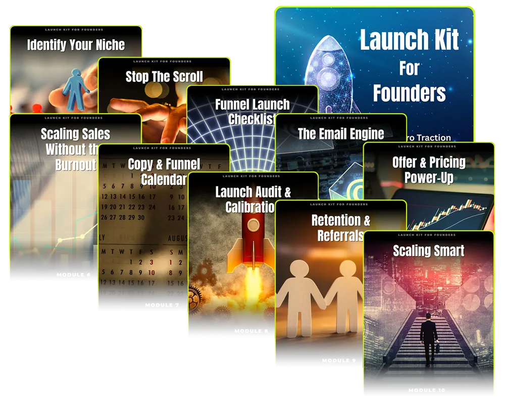 When you grab the Launch Kit for Founders today, you’re not just getting a framework – you’re unlocking an entire marketing toolbox built to accelerate your growth, simplify your systems, and save you months of trial and error.